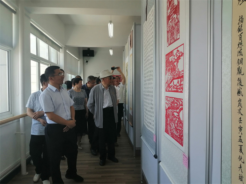 7月1日,全市离退休干部书法绘画摄影手工作品展在市老干部活动中心开展,市领导杨继宏、陈论生、师淑莲、剡小平出席开幕式。